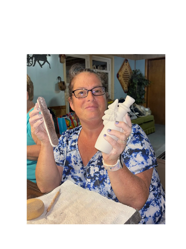 We’ll teach you how to clean and sometimes repair greenware. Trimming the seams and cleaning blemishes of clay using various pottery tools, sponges and techniques. Preparing the piece to be bisque fired to Cone 04 (1940-1975°F). This then allows the ceramic to receive paint or glaze. See FAQs for more info.